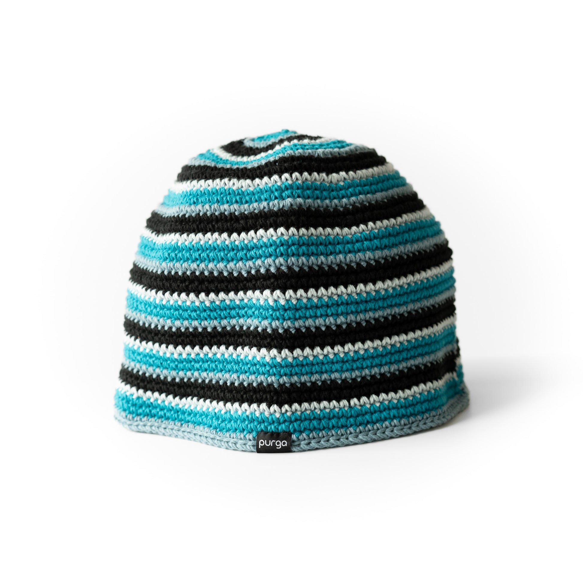 100%コットンの毛糸で編まれたこのサウナハットは、誰の頭にもよくなじみます。