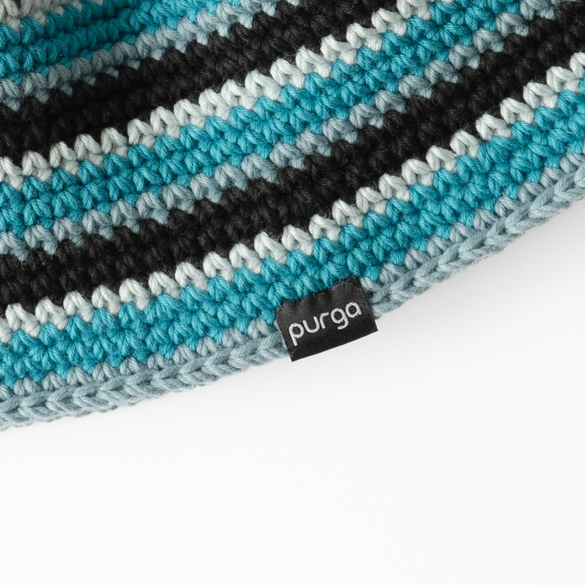 purgaのスチームクラッシャーハットは100%コットンの毛糸を使用することによって、耐熱性と保水性をバランスよく兼ね備え、より効率的にのぼせ対策が行えるようになっております。